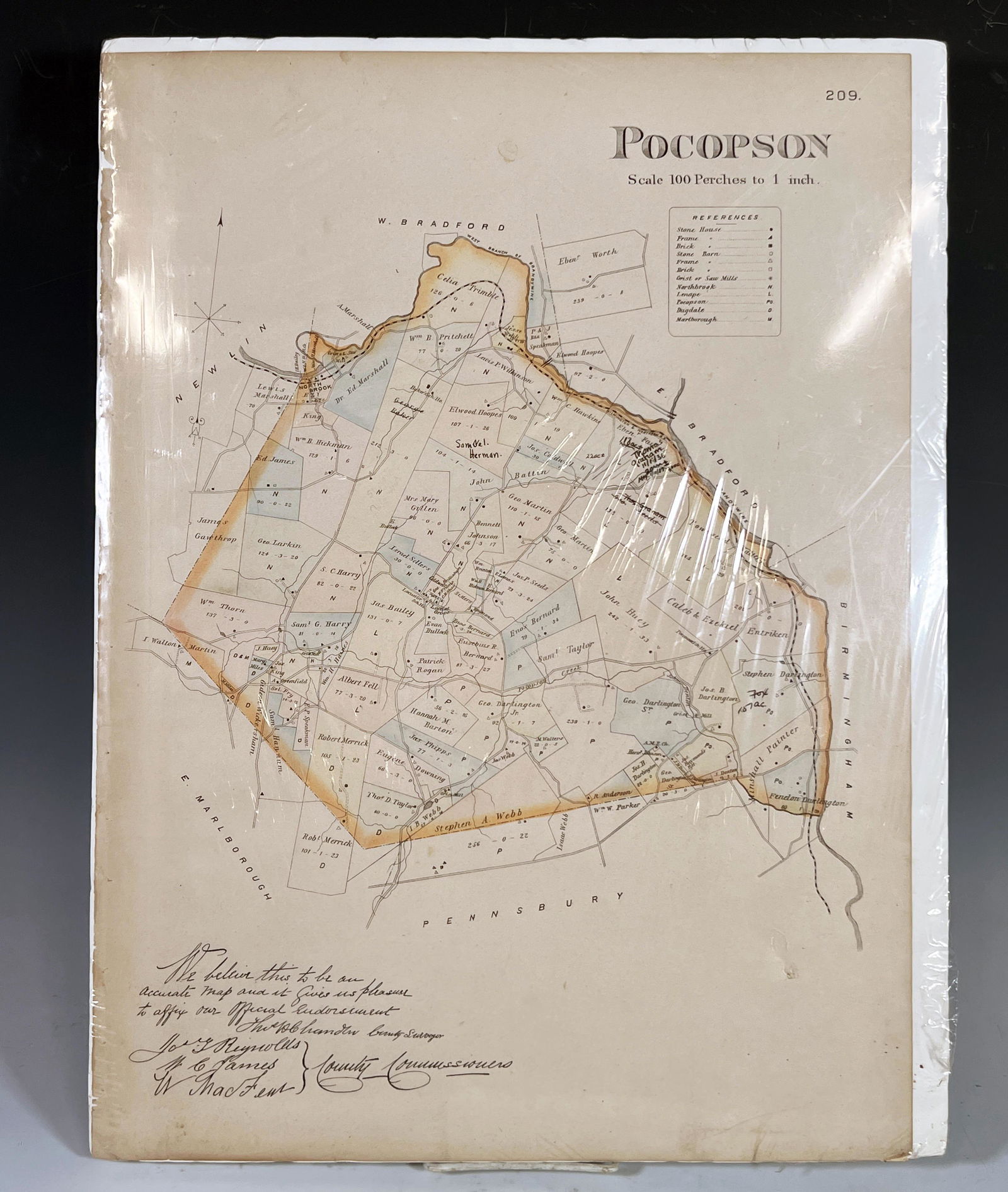 Pocopson Township Map, Original 1873 Chester County Pennsylvania